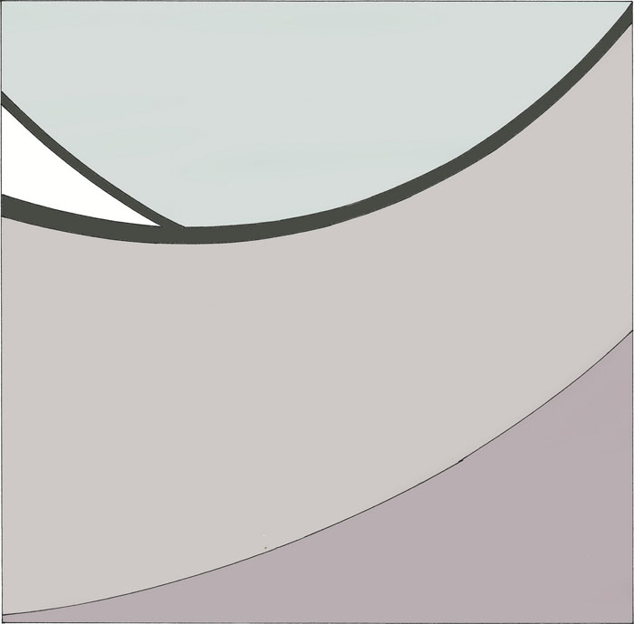 A reduction to a few basic forms already exists in the architecture itself. Weihs pushes this forward and deprives architecture of three-dimensionality, bracing it as an outline in the surface without depleting the tension of the composition. He underlines the tension achieved with subtle, coloured, sensitive and finely nuanced monochrome colour values to create an energetic composition.